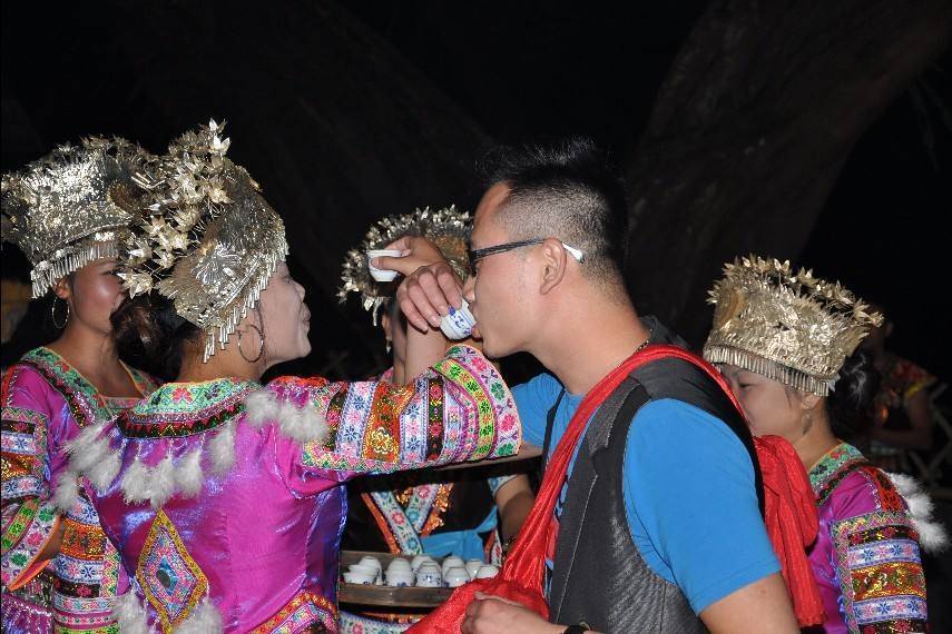 交杯酒在我们的印象中,只是婚礼上的“节目”之一。其实,这种看似特殊的饮酒方式,是苗族、布依族、侗族、水族等民族的日常敬酒风俗,交杯取自“交情”、“交心”之意。