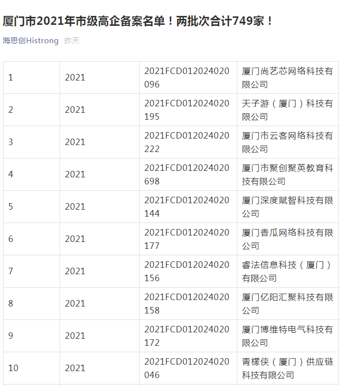 热烈祝贺湛仙下属企业厦门湛越科技通过厦门市高新技术企业备案!