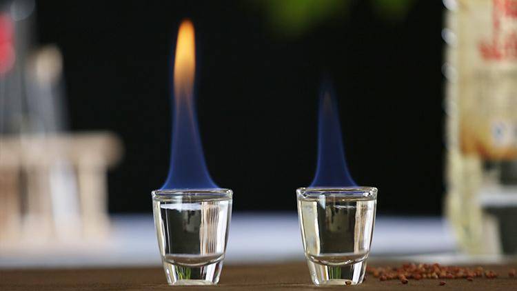 取少量白酒倒入宽口杯中,点上火,如果火焰中夹杂有红色火焰的就是粮食酿造的酒,火焰如果为纯蓝色的是酒精酒。原理是纯酒精酒成分单一,点燃就只会呈现一种颜色,而粮食酒成分复杂所以火焰中会夹杂有黄色。然而,火焰的颜色是由火焰燃烧时的温度,以及气态和等离子态物质的各个元素构成的结果,所以单纯靠验证火焰颜色来判断酒质的办法并不靠谱。