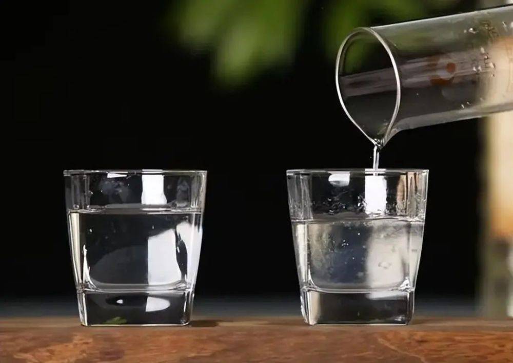 将白酒倾倒入透明的容器中,按1:1的比例倒入酒和水,酒水变混浊的是粮食酒,反之则是酒精酒。原理是粮食酿造酒中的高分子酯类物质会在低度酒中溶解度变小而析出,导致酒体变的混浊。而酒精中这类物质甚微,加水后几乎不会发生变化。有些粮食酒在生产加工的时候,加强了过滤,降低了脂肪酸乙酯的含量,因此加水也可能不会出现酒体浑浊的现象,但它依然是粮食酒。