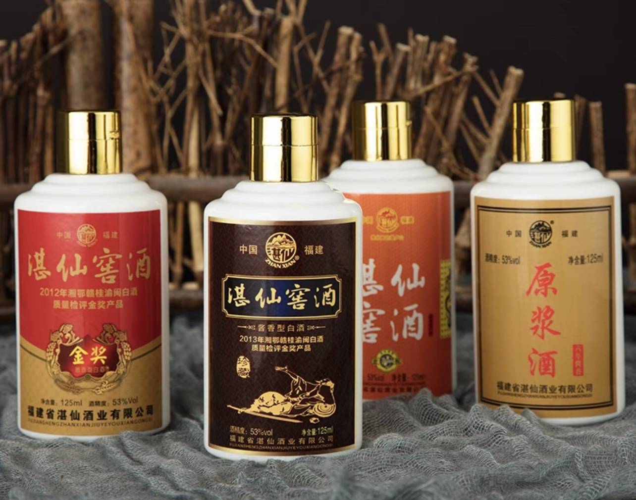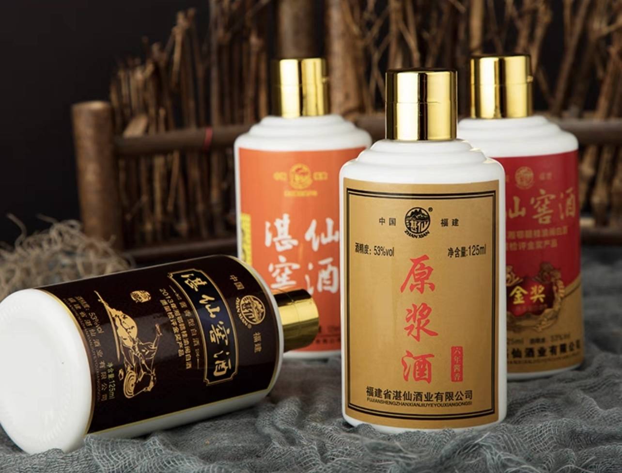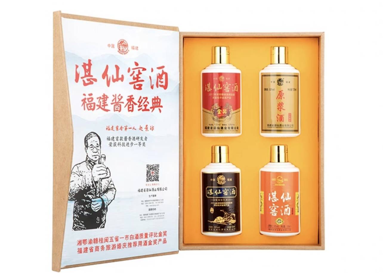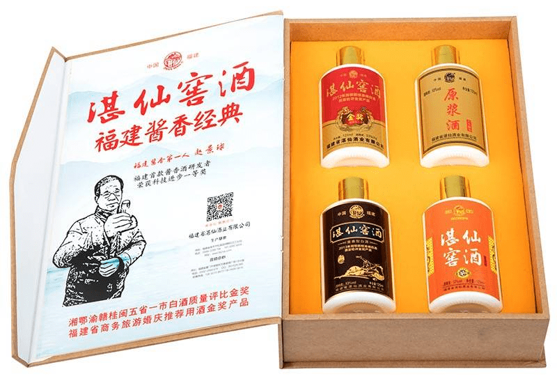 湛仙窖酒尊享礼盒聚齐了湛仙的四款人气产品,它们分别是古酿(八年窖藏)、原浆(六年窖藏)、珍藏(六年窖藏)、金奖(五年窖藏),这些酒全部是采用传统大曲坤沙酱酒“12987”酿造工艺,选用优质高粱小麦作为原材料,再加上素有“绿色金库”之称的闽江源头的天然矿泉水精心酿制而成。酒体醇厚绵柔、回味悠长、空杯留香持久,饮后不会头疼口渴。礼盒送礼显大气,单瓶外出携带也是很方便的哦!