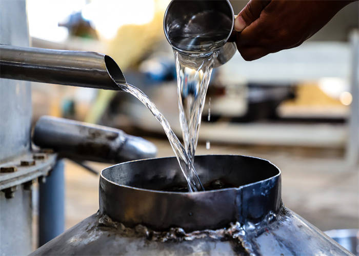 分层蒸馏是窖池酿酒过程中另一个关键环节,它能够有效保障酒体的品质。在分层蒸馏的过程中,刚蒸出来的酒不用,因为刚蒸出来的酒里杂醇油、醛类等挥发性物质含量较高,多饮可能会对人的身体产生不良反应,此所谓“掐酒头”。其次,蒸馏后期酒精度低的酒也不要,因为其中杂醇油和大分子物质含量较高,此所谓“去酒尾”。酒的不同成分被分离出来,得到的酒液更加纯净,口感更加细腻。
