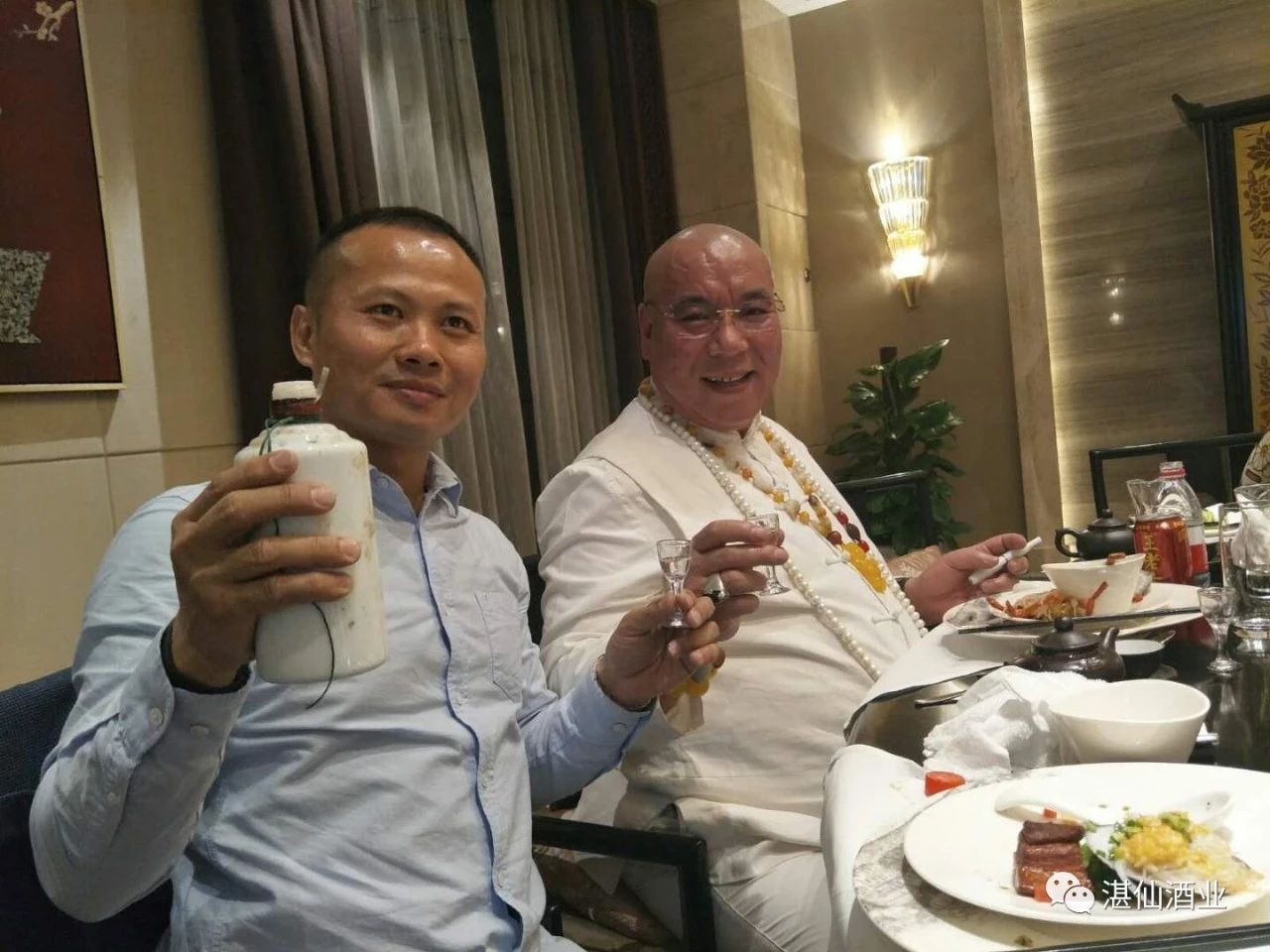 李主席对湛仙古酿和湛仙海藏酒的优秀品质赞不绝口,对湛仙酒业的发展给予勉励,并向湛仙酒业赠送了开光佛珠,祝福湛仙事业蒸蒸日上!