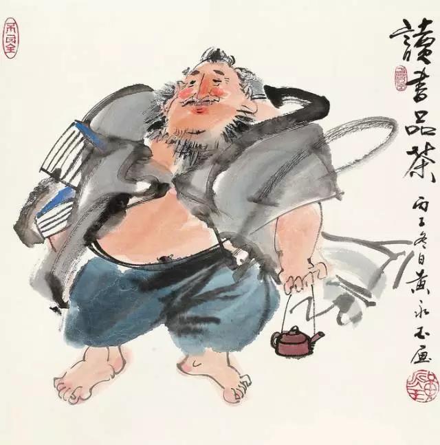 在黄永玉的茶画中,我们总能看到一份偷着乐的情趣,画中人往往因得茶这件小到不能再小的事情而变得喜色难掩,也就是这份微不足道的趣味,叫人看了画,也不禁愉悦起来。人生本就简单,若你把大富大贵、飞黄腾达作为乐趣,那自然乏味,若你把所有的小事都当成乐趣,那自然其乐融融,轻松自在不少。这便是黄永玉画中所谓的“欢喜有理”!